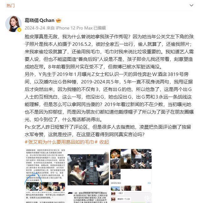 有人说葛晓倩等了十年才出来撕,是心机深。我倒觉得,可能恰恰是因为以前觉得还能忍,或者还抱有幻想,直到某些底线被彻底击穿——比如孩子的问题,比如人身安全受到威胁——才决定鱼死网破。她这次能掀起这么大风浪,关键就在于手里有“硬货”:公证过的文件、报警回执、具体的律师信息。这不再是娱乐圈常见的“小作文”爆料,而是指向明确、可能引发司法介入的实名举报。